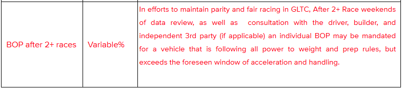 If I am reading this rule correctly, they added the ability to penalize individual cars (BoP). I don't read this to mean a specific platform (like all E36 M3s), but rather one particular car at a time.
