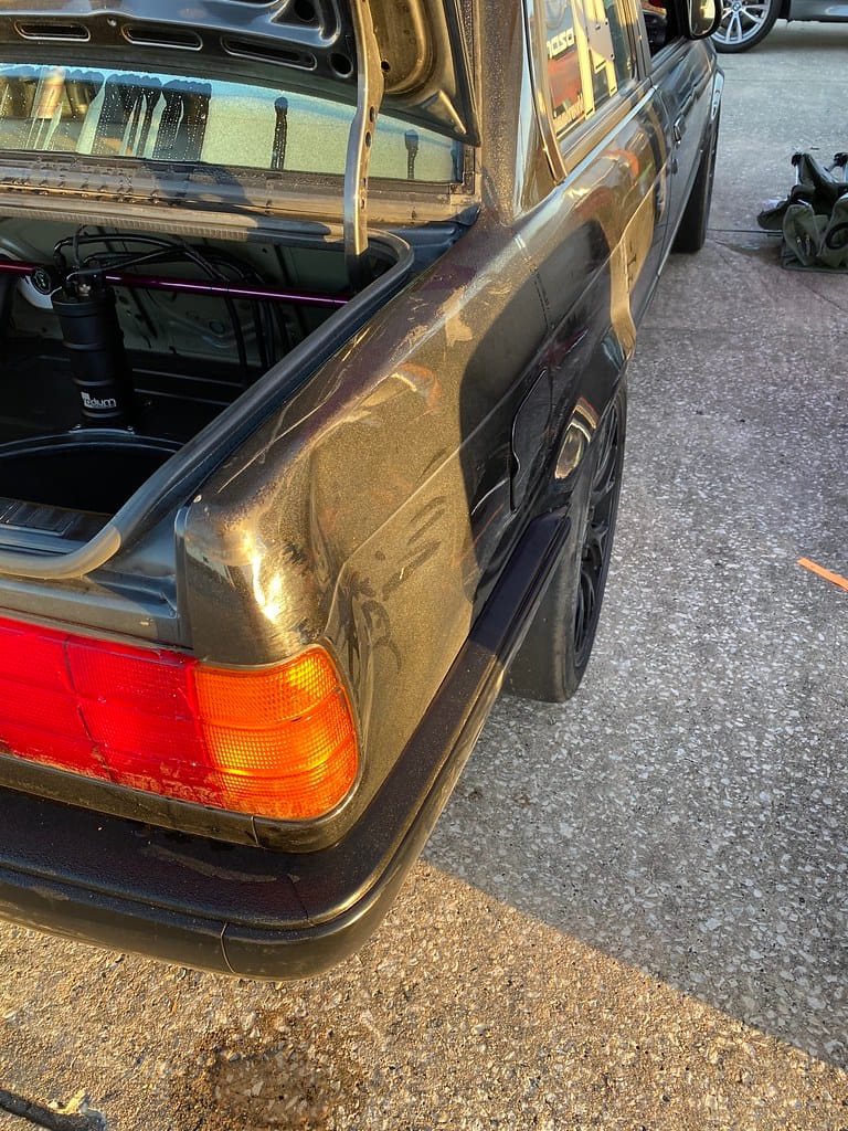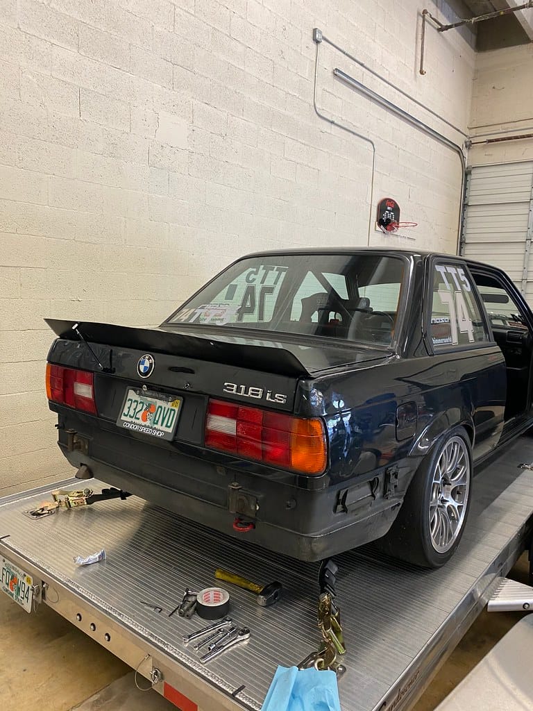 Before and after crunching the back end and quarter panel at Sebring in February 2021.