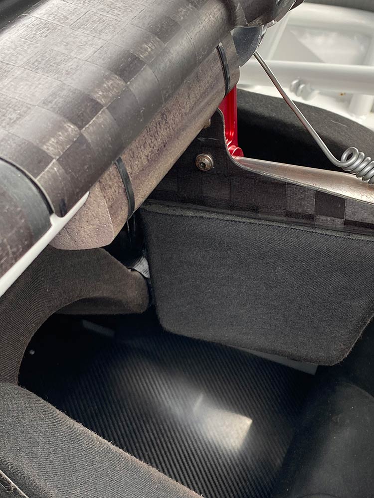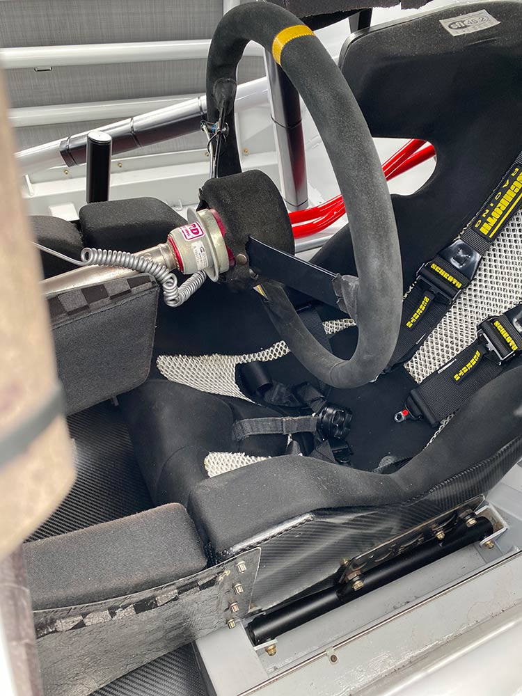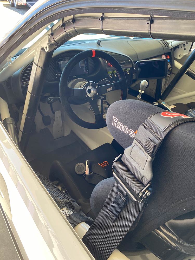 Thankfully, NASA requires all racing drivers wear a HANS device, but a containment seat is not required (you can get by with a center net in lieu). Of course at all other levels, including Time Trials, nothing at all is required when it comes to safety, besides the battery being secured, lug nuts tight, and floor mats removed from the interior.